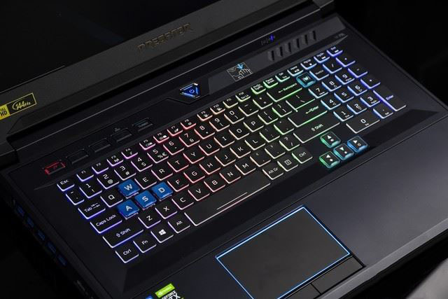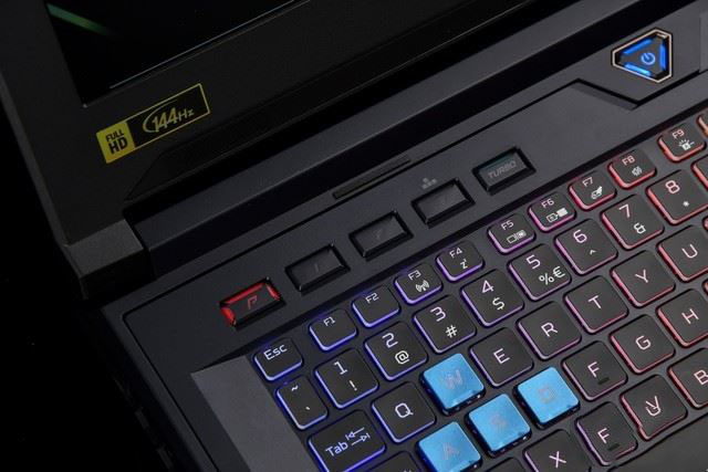 鍵盤左上方是功能區(qū),帶有諸如調(diào)節(jié)背光、開啟Turbo加速的快捷鍵以及宏定義德爾快捷鍵。鍵盤下方則是大尺寸觸控板與獨(dú)立的左右按鍵,手感良好,美觀度也無可挑剔。