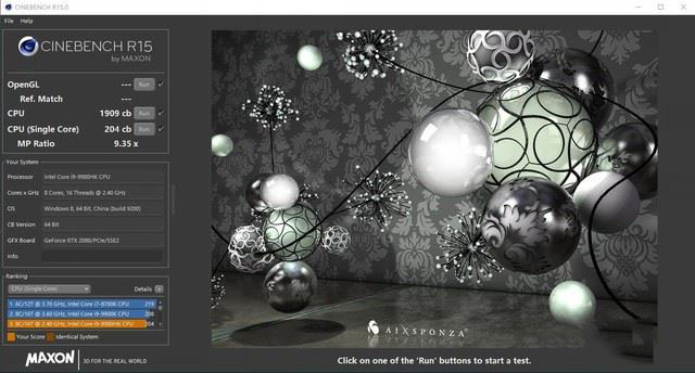 CinebenchR15標(biāo)準(zhǔn)模式測試