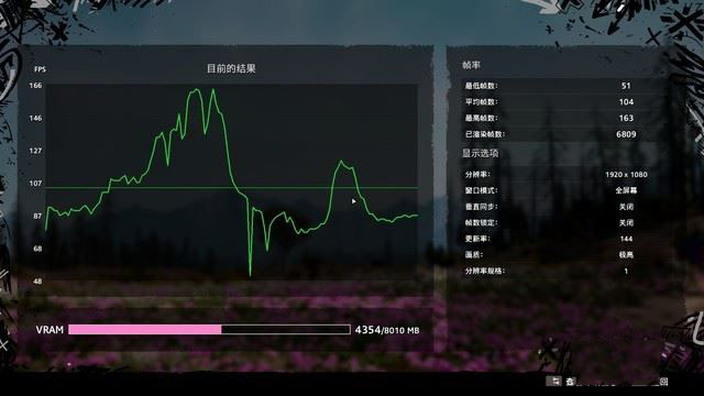 然后是《孤島驚魂:新曙光》,同樣是1080P最高畫質(zhì),戰(zhàn)斧700得到了平均104幀的好成績,能夠極為順暢的運(yùn)行。FPS游戲?qū)瑪?shù)是非常敏感的,較高的幀數(shù)搭配144Hz刷新率的屏幕可以大幅提升玩家的操作體驗(yàn),尤其是在吃雞等競技游戲中更為明顯。