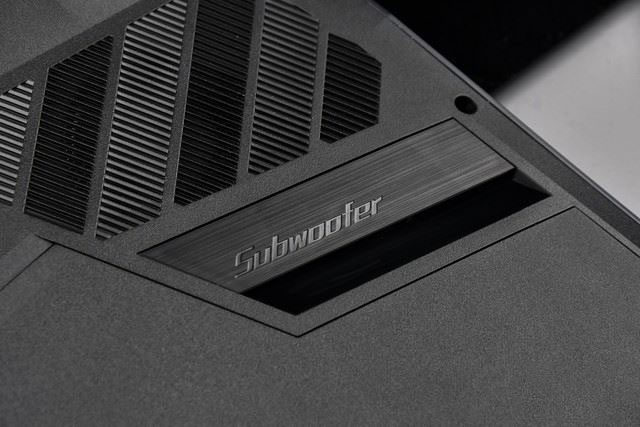 機(jī)身背面的造型也沒有被忽視,銀色的出風(fēng)口外殼一直延伸到了背部,大面積散熱格珊應(yīng)用了不同朝向的紋理,右側(cè)還帶有一個(gè)隱藏式低音炮出聲口。從散熱格珊的縫隙也能夠若隱若現(xiàn)的看到風(fēng)扇的存在。
