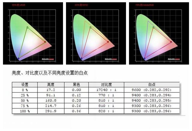 這塊1080P分辨率的144Hz刷新率顯示屏支持英偉達(dá)G-SYNC,是目前旗艦級(jí)游戲本的標(biāo)配水準(zhǔn)。色域方面,95%sRGB、65%NTSC、70%AdobeRGB的表現(xiàn)中規(guī)中矩,是游戲本屏幕的常見水平。其它測試參數(shù)上,該屏幕最大亮度292尼特,對比度820:1,色溫9300K,色調(diào)非常冷。