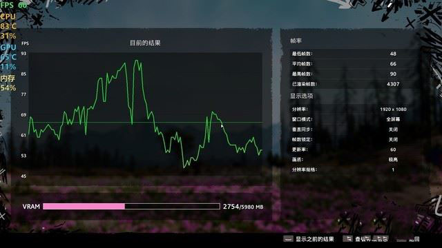 測試時,我們將畫質(zhì)設置為:1920×1080、關閉垂直同步、使用系統(tǒng)內(nèi)置的最高畫質(zhì)。