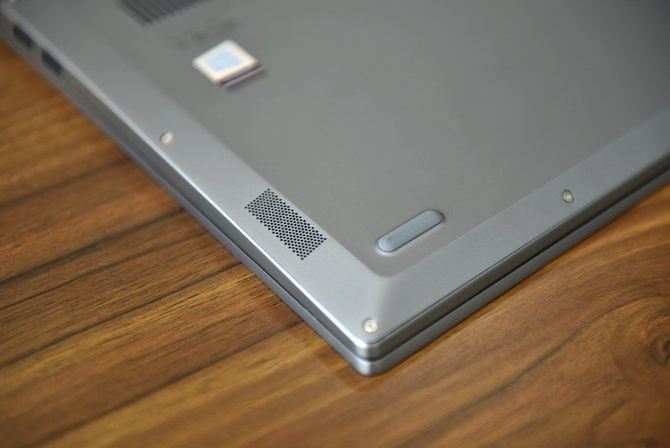 機(jī)身底部,一排整齊的通風(fēng)柵格確保內(nèi)部散熱通暢,腳墊起到抬高機(jī)身和防滑的作用,無需擔(dān)心突然從桌面滑落造成機(jī)身損壞。