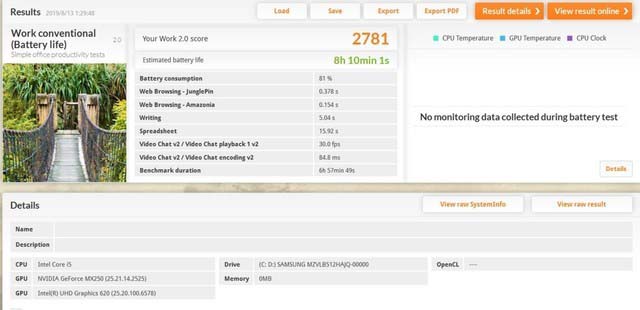 了解筆記本評測的朋友都知道,PCMark 8的續(xù)航測試負(fù)載較高,是連續(xù)性的Web、文檔、視頻等應(yīng)用的測試,所以一般來說能夠挺過4個小時,我們就認(rèn)為這款筆記本的續(xù)航能力足夠滿足日常間斷性應(yīng)用了。