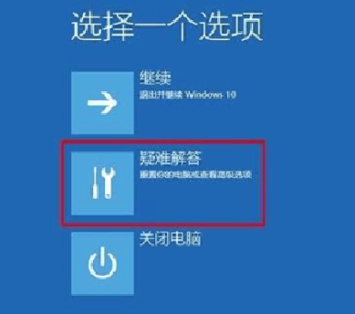 4、重新啟動電腦后,點擊頁面中的 疑難解答 選項;