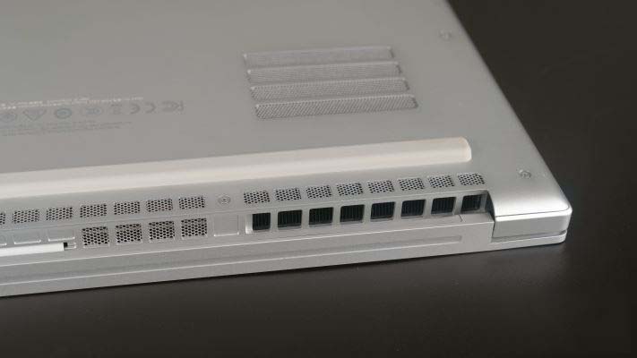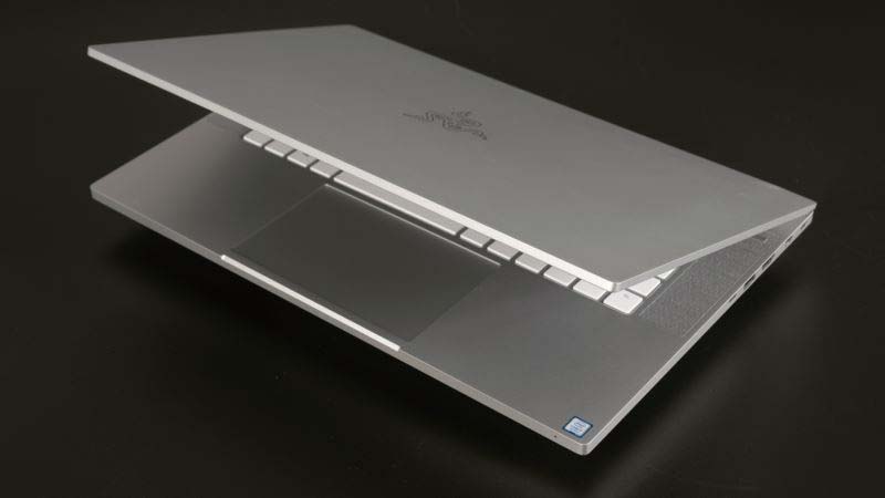 雷蛇靈刃15水銀版采用了下沉式轉軸,這對于游戲本來說不算一個好的設計,因為后面的出風口會被擋住,還會導致熱風加熱轉軸附近的部分,不過具體散熱怎樣還是要測了才知道。