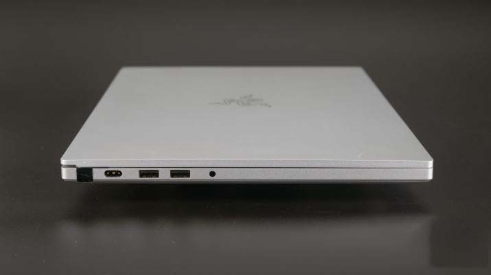 由于采用了下沉式轉軸,后面便無法安排接口。左側的接口依次為電源接口、兩個USB 3.2 Gen 2接口,耳麥接口。右側依次為雷電3接口、USB 3.2 Gen 2接口、HDMI 2.0b視頻輸出接口、mini-DP 1.4視頻輸出接口、防盜鎖扣。因為機身過于輕薄,并沒有網線接口,有需求的人需要自備一個轉接器。