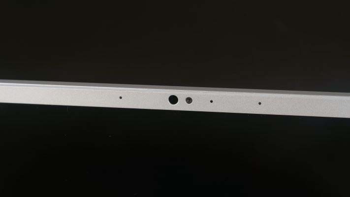 B面采用了超窄邊框的設計,左右邊框不到5mm,將機器的長寬縮小到了355×235毫米,官方號稱這是世界上最小的15寸游戲本。屏幕下方是雷蛇的英文logo,屏幕上方有一顆100萬像素的攝像頭,還有一顆紅外攝像頭,支持Windows Hello解鎖,其余三個小開孔應當是降噪麥克風。要是B面能覆蓋一層黑色玻璃,將這些開孔遮住的話,整體性會更強。