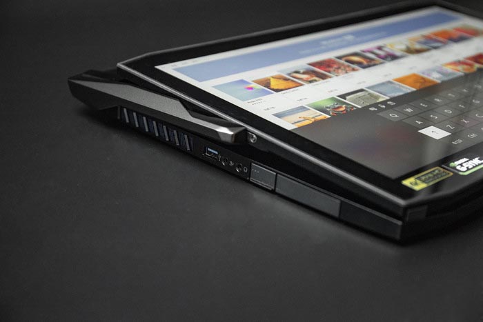 掠奪者刀鋒900是一款外型新穎、功能創(chuàng)新的電競游戲本,其運(yùn)用CNC加工技術(shù)的行星臂特殊轉(zhuǎn)軸設(shè)計(jì),可將顯示屏翻轉(zhuǎn)、延展或傾斜使用。再加上其強(qiáng)大的性能支持,使得刀鋒900成為市場上功能最強(qiáng)大的二合一設(shè)備。