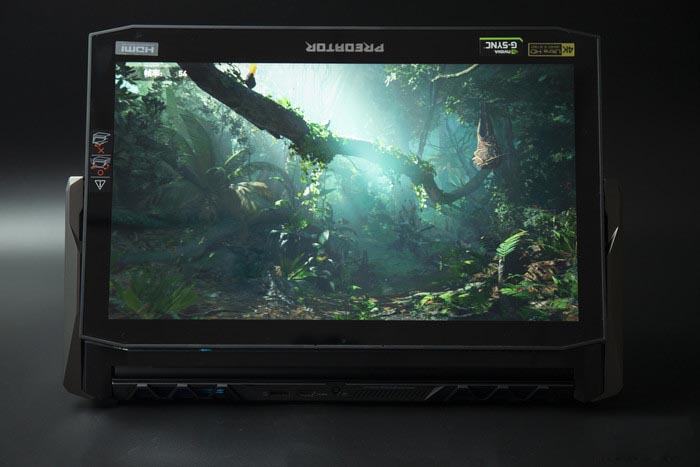 為了讓刀鋒900的多種操作模式擁有更好的使用體驗(yàn),掠奪者選擇使用了一款可觸控的4K(3840x2160)UHD屏幕。該屏幕支持G-SYNC顯示技術(shù),最高亮度達(dá)到了400nits,并且這塊屏幕還擁有100%AdobeRGB的色域。