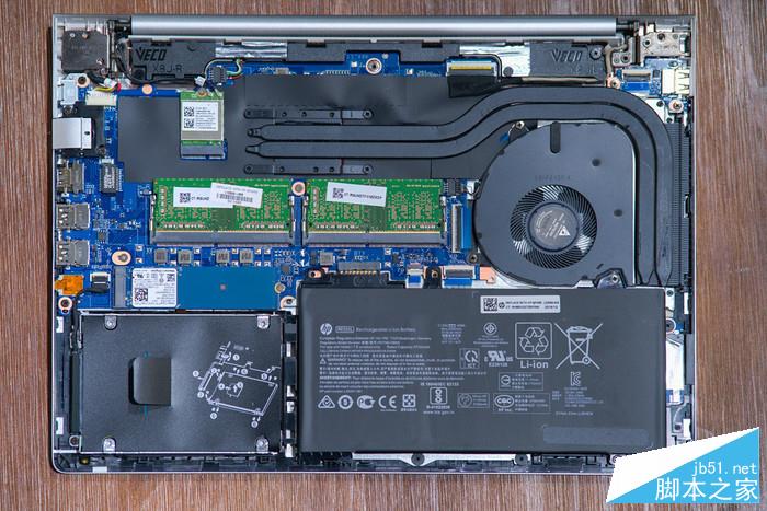 再打開D面后,我們可以看到全新惠普戰66二代內部構造較為規整,走線整齊,主板、硬盤、電池與機身邊框之間縫隙較小,內部空間利用也較為合理。