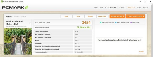 另外,ThinkBook 14s還擁有512GB PCIe SSD,實(shí)測持續(xù)讀取1621MB/s、持續(xù)寫入869MB/s,容量大、性能好;續(xù)航方面,ThinkBook 14s內(nèi)置了45Wh電池,實(shí)測PCMark8續(xù)航成績?yōu)?小時(shí)18分鐘,實(shí)際使用預(yù)計(jì)可維持10小時(shí)左右,續(xù)航方面表現(xiàn)還可以。而且ThinkBook 14s支持快充,關(guān)機(jī)狀態(tài)下充電1小時(shí),電量可從0%充至80%。