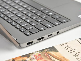 ThinkBook 14s的鍵盤手感還是不錯(cuò)的,按鍵偏軟,回彈跟手,并且支持兩級白色背光;觸控板為一體精準(zhǔn)式,支持Windows 10手勢操作,反映靈敏,使用體驗(yàn)出色;接口部分,機(jī)身左側(cè)接口為電源、HDMI、Type-C、3.5mm耳麥接口,右側(cè)接口為USB3.0×2,接口稍微少了些,沒有SD卡槽較為遺憾,不過滿足日常使用是足夠了。