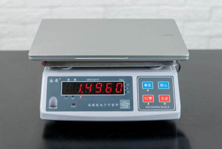 作為一款更偏向商務、日常應用的筆記本,攜帶重量非常影響試用體驗。首先將RedmiBook 14上稱,其本機重量為1.496kg,與官方標稱的約1.5kg幾乎相同。而同時攜帶筆記本電腦及電源適配器時,總共的攜帶重量為1.86kg左右,整體依舊比較便攜,不會非常累贅。