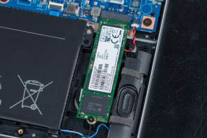 RedmiBook 14采用了512GB的SSD,拆開后蓋后看其型號為三星的PM871b,采用的是SATA協議,SSD使用的是3D TLC閃存芯片。不過這款筆記本的SSD接口實際上是支持NVMe協議的,經過實際測試,將三星970 evo SSD裝入RedmiBook 14可以在BIOS中順利識別出SSD型號。