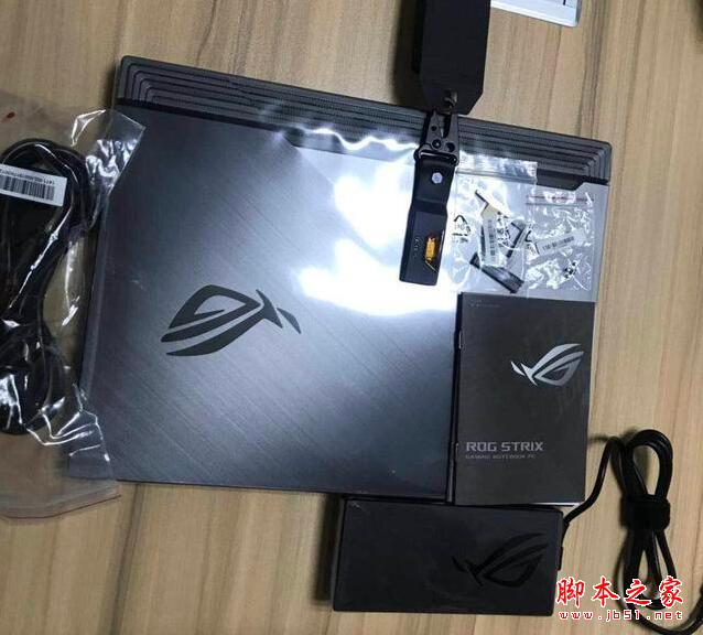 這里面一層層的放的很工整,強迫癥一本滿足。里面的東西還蠻多的,包括說明書、本體、電源線、鑰石等給大家看一下全家福。就這樣就能看見這款ROG槍神3筆記本的背面沒有多余元素,只有一個ROG的標志。