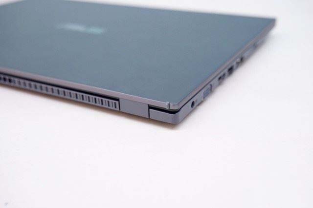 今天拆解的這款是華碩PX574F紀念版,可以看到它的A面為金屬材質,圓潤過渡的邊緣與細膩的金屬磨砂質感良好融合,具有商務產品低調的設計理念。同時該機的出風口被設計在了機身后部,可以保證順暢的出風通道,即便是合上蓋子運行也不會影響散熱