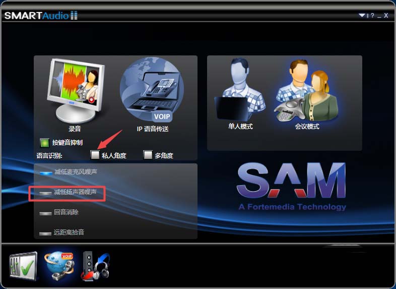 6、然后就可以看到減低揚聲器噪音了,我們點擊私人角度來打開;