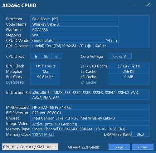 英特爾八代酷睿i5-8265U,Whiskey Lake架構,四核八線程,相信大家也都了解,這款處理器雖然仍舊是14nm工藝,但也是經過改進、在性能上有很大提升的,所以也被很多人稱為是14nm ++。這款處理器最高頻率可達3.9GHz,設計功耗TDP15W,并且集成 Intel UHD Graphics 620顯卡,但是由于搭載了MX250顯卡,也就可以忽略集顯了。