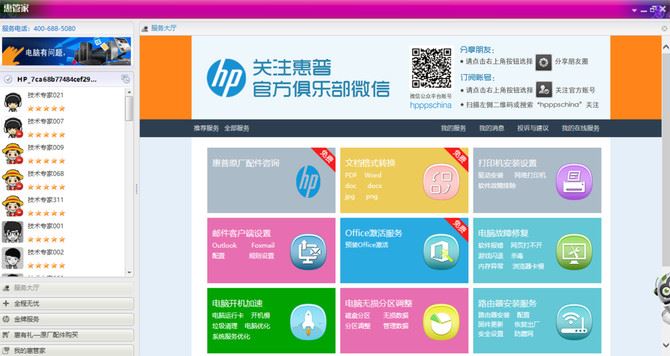 此外,我們也可以通過“惠管家”客戶端在線求助技術專家來為我們更為全面的服務,當然還有一些貼心的小工具和服務,比如打印機的安裝設置、郵件客戶端設置、Office激活服務、硬盤分區等,在這里都可以得到快捷解決。