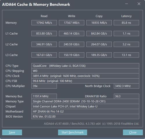 通過上面的拆解圖可知,這款筆記本支持雙內存插槽,如果您希望獲得更高性能,或者后期需要升級,這樣的配置就非常有用了,而且可以保持硬件配置性能很多年不落伍。硬盤存儲采用了M.2固態+預留機械雙硬盤方案,同樣給用戶擴展容量留出選擇。內存規格為DDR4 2400,最大支持32GB,內存的讀取速度為17942MB/s,寫入速度為17567MB/s。