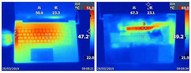 從實測的機身表面溫度也可以看到,更多的熱量通過左側大風量排出,雖然鍵盤區還有一些溫度,但是也都在可接受范圍,而且我們日常辦公情況下,實際上是不可能達到這個溫度的。