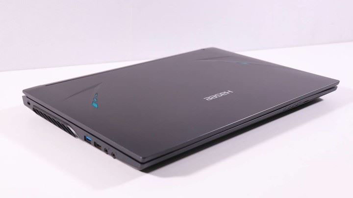 首先外觀上,這款產品大家看起來可能會有一些眼熟,它采用的是和在售的神舟Z8-CR7N1相同的模具,也就是藍天(CLEVO)公模NH50ED。整機外殼全部為ABS工程塑料,A面左右兩側配有類似“眼睛”造型的LED燈,開機后呈淡藍色。作為一款主打低價位的公模產品,其整機的做工和細節的處理比較一般,頂殼的強度也不太夠,對屏幕的保護會有些欠缺。外形尺寸方面,長362mm,寬258mm,厚32mm,裸機重量2.17kg,加150W電源適配器的旅行重量為2.7kg,整體的體量基本是一款15.6英寸游戲本的正常水平。