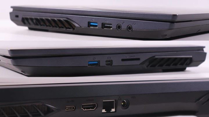 擴展接口方面,公模的產品接口一般都會比較豐富,左側依次為1個USB3.0,1個USB2.0以及耳機和麥克風接口,后部為電源接口、RJ45網線接口、HDMI和支持視頻輸出Type-C接口,右側依次為SD讀卡器,miniDP和USB3.0,整個接口配置還是比較齊全,可以適應各種應用場景,只不過由于側邊風口的緣故,左右接口都比較偏下,在連接USB或DP設備后會對使用鼠標產生干擾。