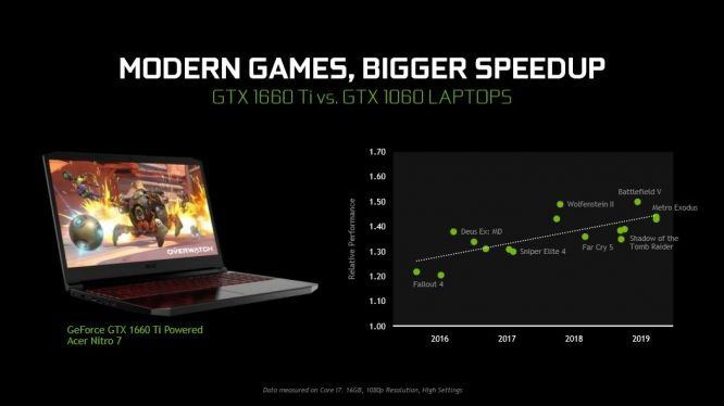 現(xiàn)在這個記錄再度刷新,2000元定位的英偉達GeForce GTX 1660 Ti桌面顯卡發(fā)布2個月后,筆記本版GeForce GTX 1660 Ti也紛涌而至。這也將成為6000元檔位,甚至更低價的甜點筆記本新選擇。