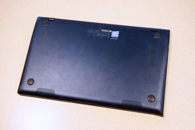 來(lái)到機(jī)身底部,可以看到底部的進(jìn)風(fēng)口其實(shí)并不大,主要的進(jìn)風(fēng)口應(yīng)該在轉(zhuǎn)軸的另一側(cè)。而兩個(gè)揚(yáng)聲器被設(shè)置在前部這個(gè)距離用戶最近的位置。另外我們還注意到在機(jī)身的前部還有一個(gè)小缺口,這也說(shuō)明了靈耀Deluxe14是一臺(tái)可以支持單手開(kāi)合的輕薄本。