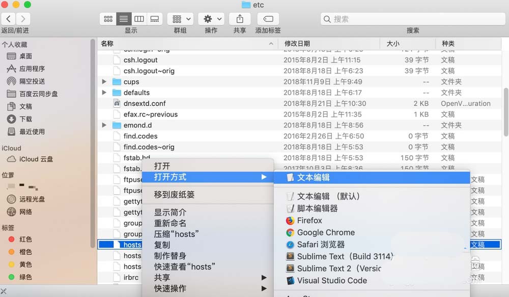 4、找到hosts文件,右擊編輯,編輯并保存即可。