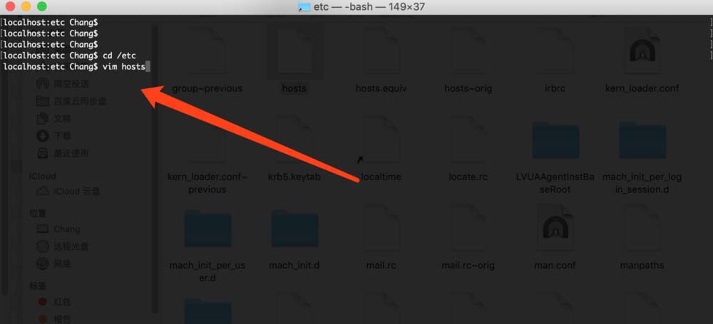 5、或者在終端輸入vim hosts進行編輯并保存即可。