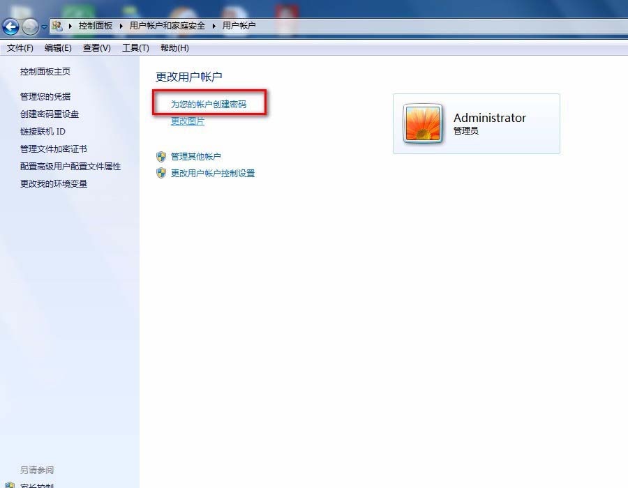 4、如圖可以看到“為您的用戶創建密碼”,點擊進入。