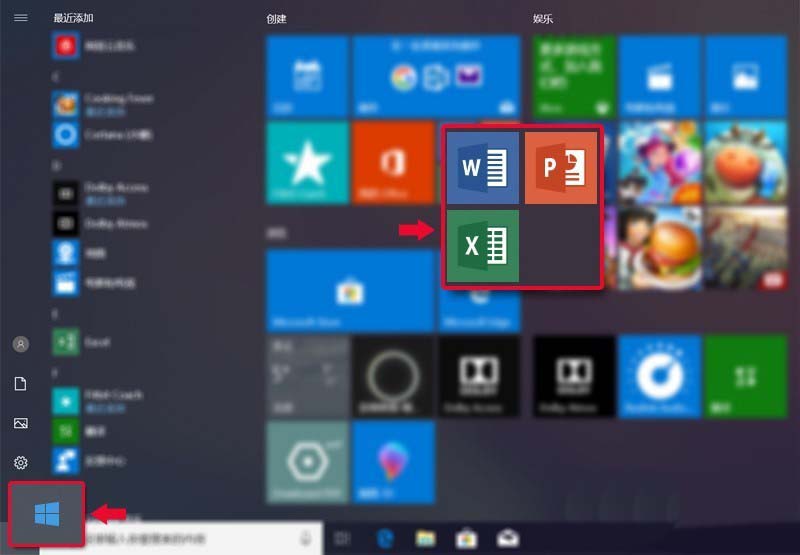 1、點擊 Windows 圖標,選擇一個 Office 應用并打開(注意:請點擊 Word、Excel、PowerPoint 三個圖標中的任意一個,千萬不要點擊“我的 Office”,很多人就是點了“我的 Office”而沒法順利激活內(nèi)置 Office 的啦)。