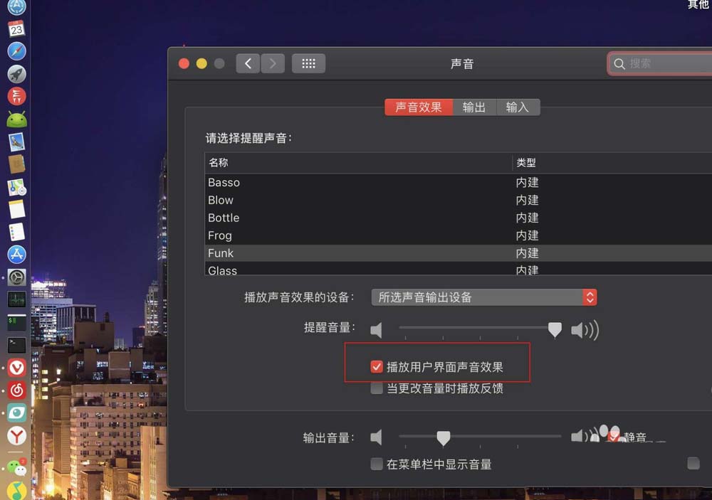 4、輸出效果點擊它,把紅色的勾去掉,那么也會取消翻蓋的聲音。