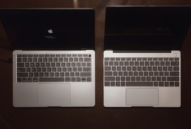 左為MacBook Air 2018, 右為 MateBook 13