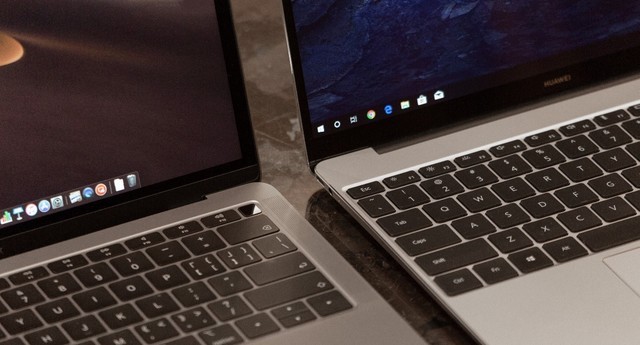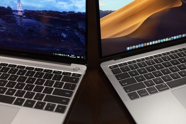 左為MateBook 13, 右為MacBook Air 2018