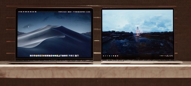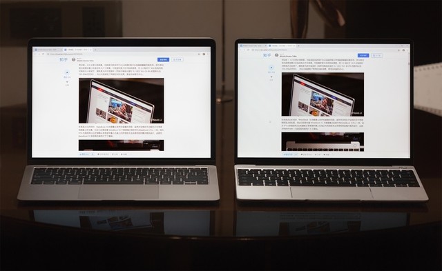 左為蘋果MacBook Air 2018右為MateBook 13