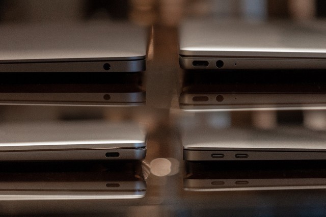 所以從接口上來看,MacBook Air 會是最為頂級的存在,畢竟 MacBook Air 2018 上的兩個 USB-C 接口均為 40Gbps 的雷電 3 標準,這就意味著它可以直接外接 2 個 4K 顯示器,并且每一個都是全功能的 USB-C 接口,均可同時傳輸數據,供電,輸出視頻信號。