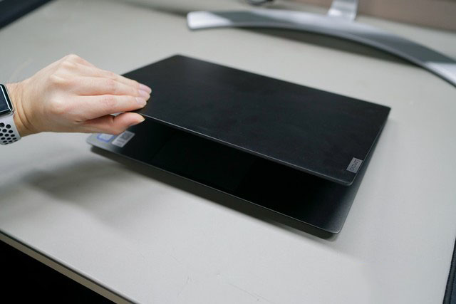 聯想小新Air 13的機身采用了全金屬設計,我們今天測試的這款采用高定黑配色,采用了納米級防指涂層的A面質感相當強烈,細膩的手感讓人愛不釋手。聯想小新Air 13的機身重量僅為1.25kg,厚度控制在了14.8mm左右,便攜性毋庸置疑。
