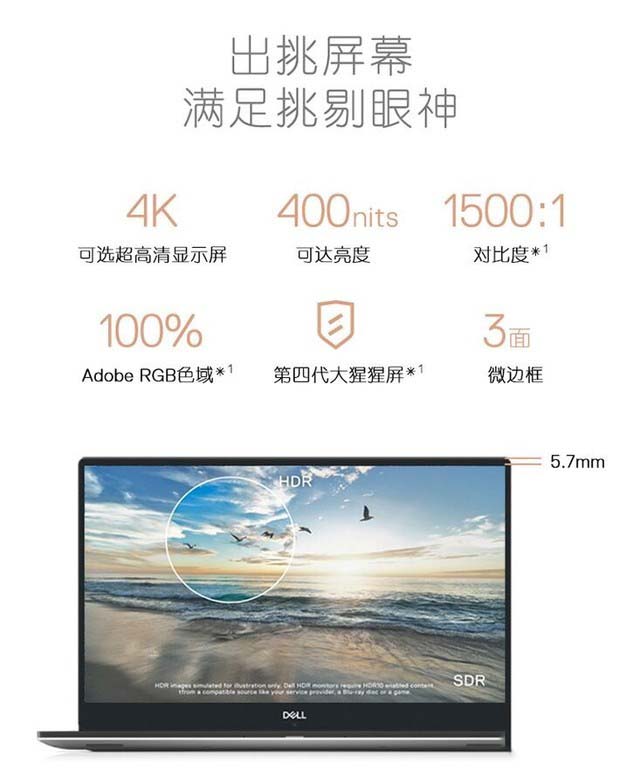 戴爾XPS 15最高可選4K超高清顯示屏,該屏幕擁有400尼特典型亮度、1500:1的高對比度和100%AdobeRGB色域,相比于主流筆記本中素質(zhì)較高的300尼特亮度、1000:1對比度和80%以內(nèi)的Adobe RGB色域來說有巨大的提升。尤其是色彩方面,PS等Adobe家族軟件都會針對Adobe RGB適配,因此戴爾XPS 15顯然是一款非常適合專業(yè)設計類用戶選擇的產(chǎn)品。