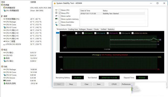 首先來看核心溫度。我在測試時單獨開啟了負載較高的AIDA 64 FPU測試。使用過AIDA 64的朋友都知道,這項測試比較貼近實際應用中的高負載環境,測試壓力也比較大,一般來說核心溫度都會爆表。