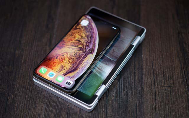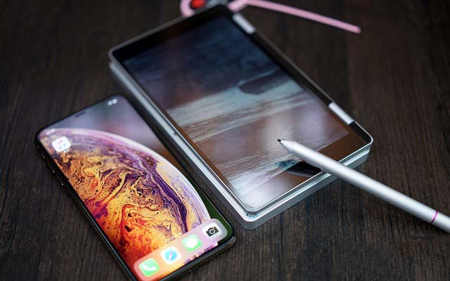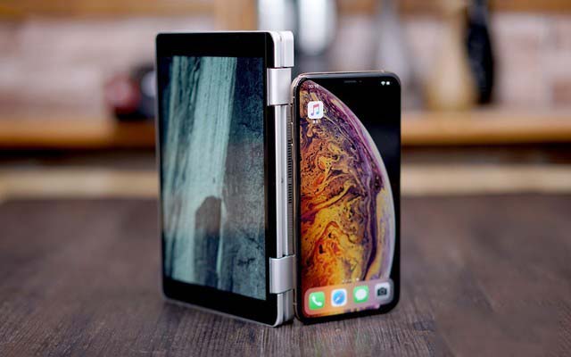 “7英寸的手持辦公筆記本電腦”,單單是這個定位就會吸引不少人的關注。那么它到底有多么小呢?上面那張帶有鼠標的圖片大家可能已經一窺一二,下面我們來拿大家比較熟悉的iPhone XS MAX來對比一下: