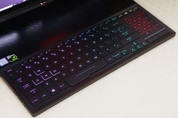 RGB 背光燈自然也是冰刃 3 必備的元素,燈效支持 AURA SYNC 神光同步技術,可以輕松與其它設備同步燈效。