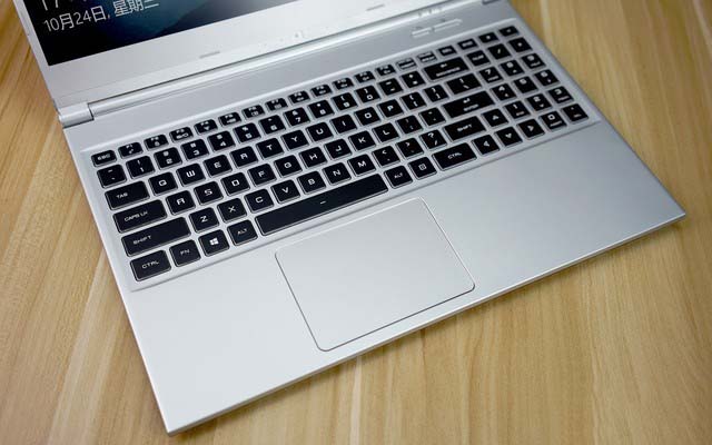 鍵盤方面,炫龍耀9000II帶有數字鍵區,因此整個鍵盤鍵帽的尺寸比不帶數字鍵區的筆記本要小一些,不過整體的操控手感還是非常舒適的,按鍵鍵程較長,彈力反饋鮮明,很適合游戲玩家使用。