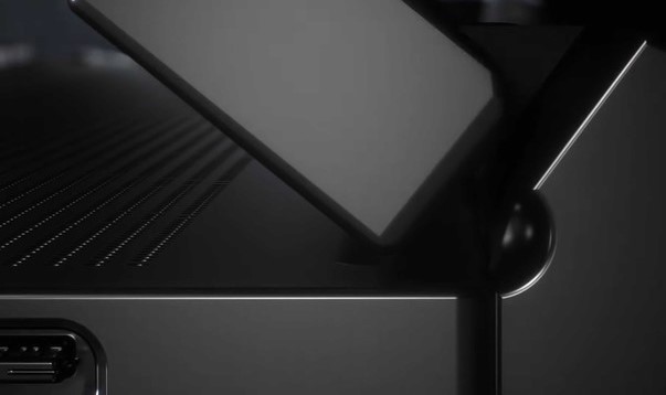 除了牛皮和金屬的完美嵌和合,幽靈Folio的另一大設(shè)計(jì)亮點(diǎn)就是他的轉(zhuǎn)軸,作為一款二合一產(chǎn)品,它其實(shí)并不能翻轉(zhuǎn),甚至屏幕的打開(kāi)角度不足135度,屏幕部分也不能拆下來(lái),核心硬件都放在底部。那么他又如何稱得上是二合一產(chǎn)品呢?