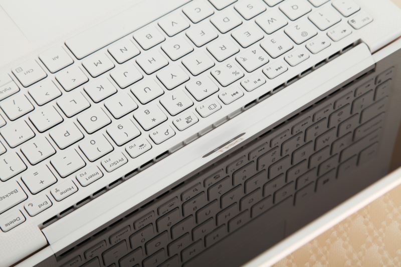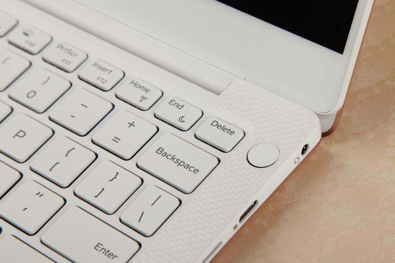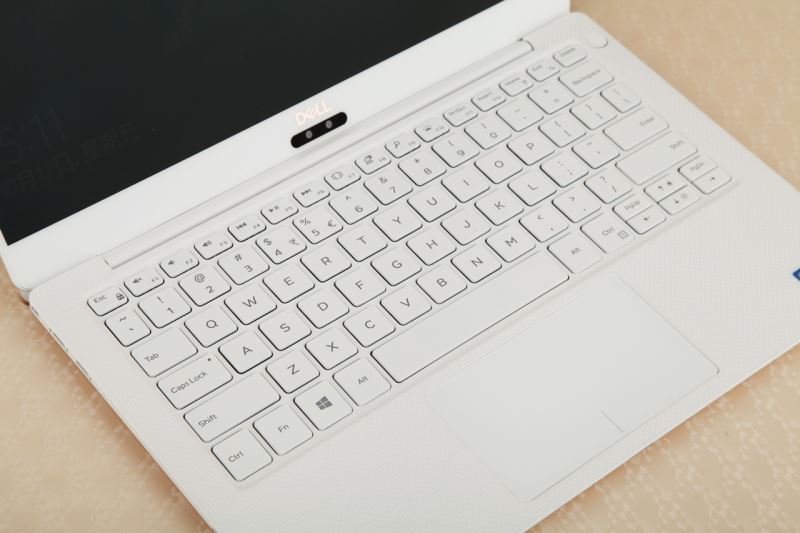 XPS 13的C面整體采用了白色設計,整體覆蓋了采用九層織疊技術的白色硅纖維,配合Velvecron SR-1防污涂層,在有著良好觸感的同時有效阻止污漬的附著,減少用戶清理頻次。