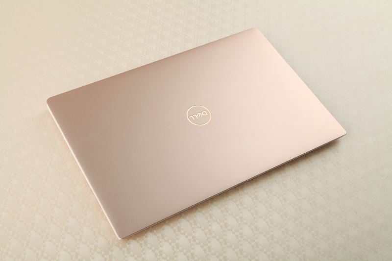 全新的XPS 13采用了金色的配色,A面整體以啞光磨砂的方式進行的處理,有著獨特的質感,觸感優(yōu)良,正面僅有一個DELL LOGO,外觀設計簡潔大方。