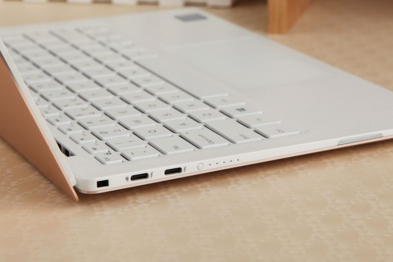 由于全新XPS 13的厚度最薄處僅有7.8mm,戴爾為這款輕薄本產品配備了三個USB Type-C接口,分別配備在機身兩側,其中機身左側配備有兩個USB Type-C接口,支持雷電3、快速充電以及顯示輸出。雷電3接口的數(shù)據(jù)傳輸速率高達40Gbps,是雷電2接口的兩倍,外接顯卡塢的性能提升也更加明顯。