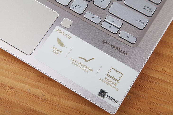 a豆筆記本13采用了華碩輕薄本系列ErgoLift小翹跟轉軸設計,在正常使用過程中,A面將會將D面頂起一定的角度,為用戶提供舒適的輸入角度的同時也可以提升散熱性能。